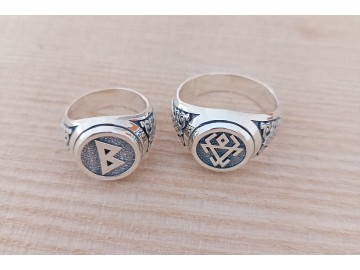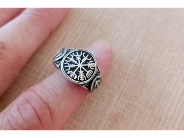 Кольцо с руническим компасом Вегвизир и рунами Тейваз (Тюр) - Путь Воина