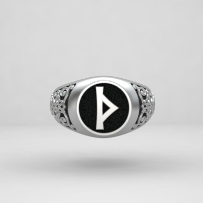 В массивное серебряное кольцо весом порядка 16гр. надежно закреплена Руна Турисаз.